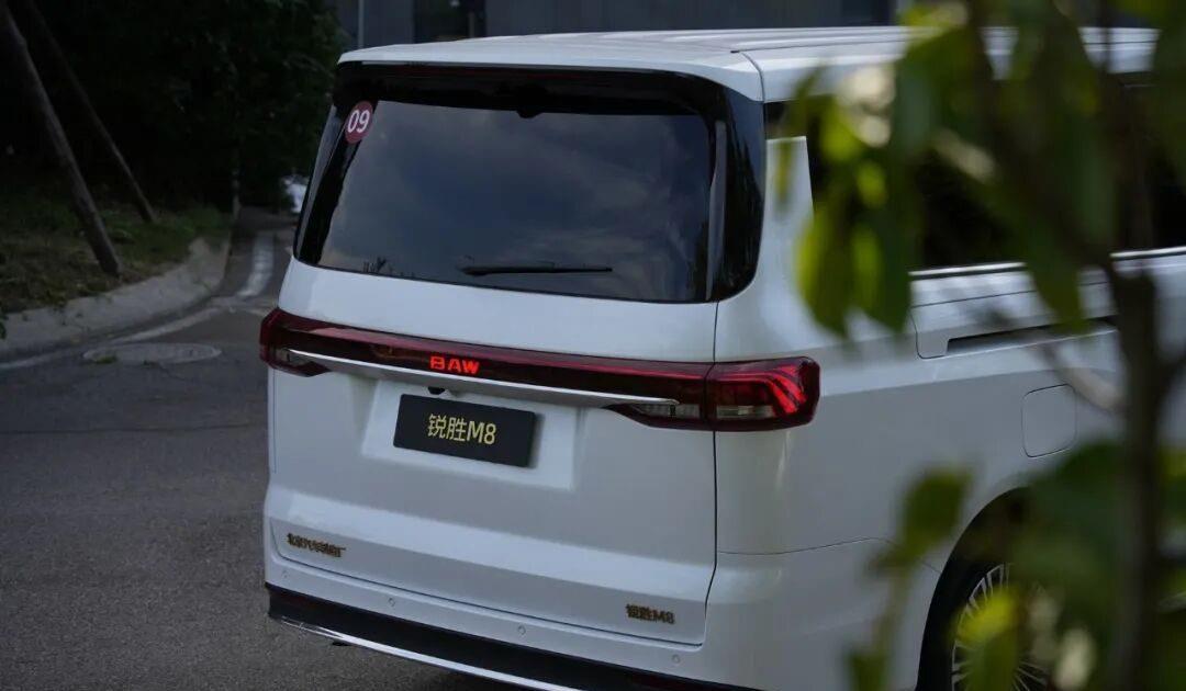 车身侧面和尾部的设计非常简约,没有太多不伦不类的元素,让人印象深刻的是多幅轮毂和星河尾灯,尾灯144块三角形发光单元沿贯穿轨迹逐次铺陈。锐胜M8除了多种常规配色外还提供了撞色方案,比如上白下蓝的车型通弘网,颜色搭配的很时尚,比较符合年轻群体的审美。